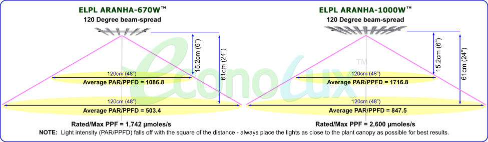 (PAR/PPFD) - 670 Watts or 1,000 Watts.